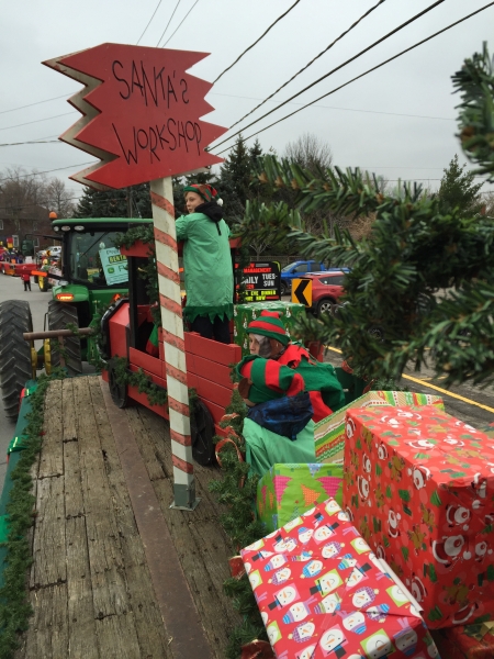 As marching bands and floats went by, the anticipation grew. Lead by a tractor, Santa's workshop displayed the busy elves working hard preparing gifts and loading the sleigh for that special day.